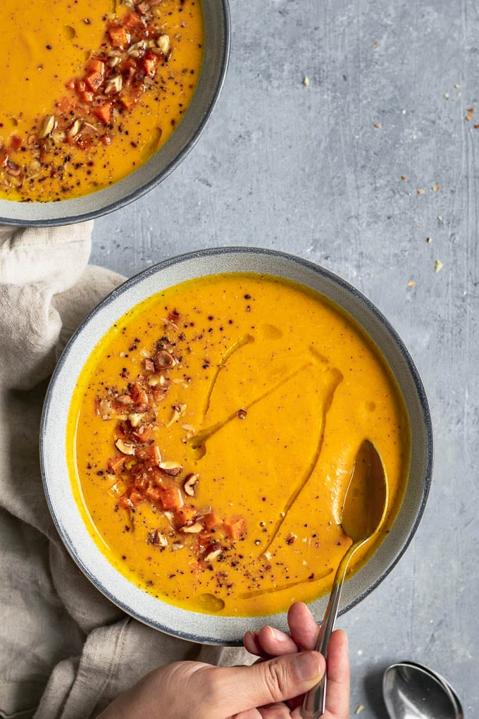 If you make this butternut squash almond bisque, let me know how it goes! Leave a comment and rate the recipe below! And tag your recreations @thecuriouschickpea and #thecuriouschickpea on Instagram, I absolutely love seeing your photos!