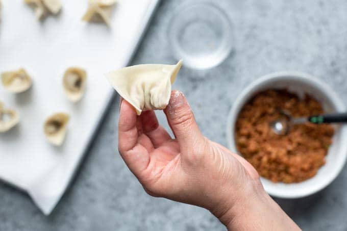 There are many ways to shape dumplings, and some of it depends on if you’re using square or round wrappers.