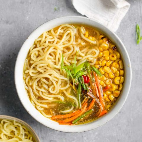 This delicious vegan ramen is made with an easy miso tahini broth for a rich and flavorful noodle soup. It’s served with charred corn and carrots, and is quick and weeknight friendly!