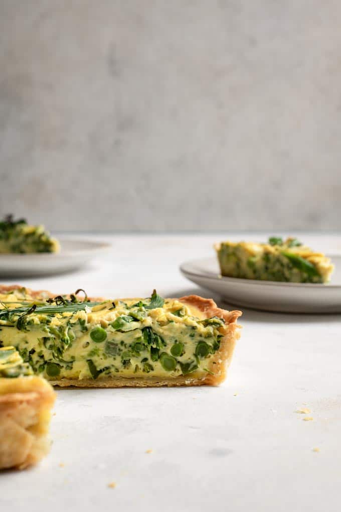 I’m a big fan of vegan quiches. The flaky crusts and custardy centers. They’re packed with protein and you can load them up with veggies.